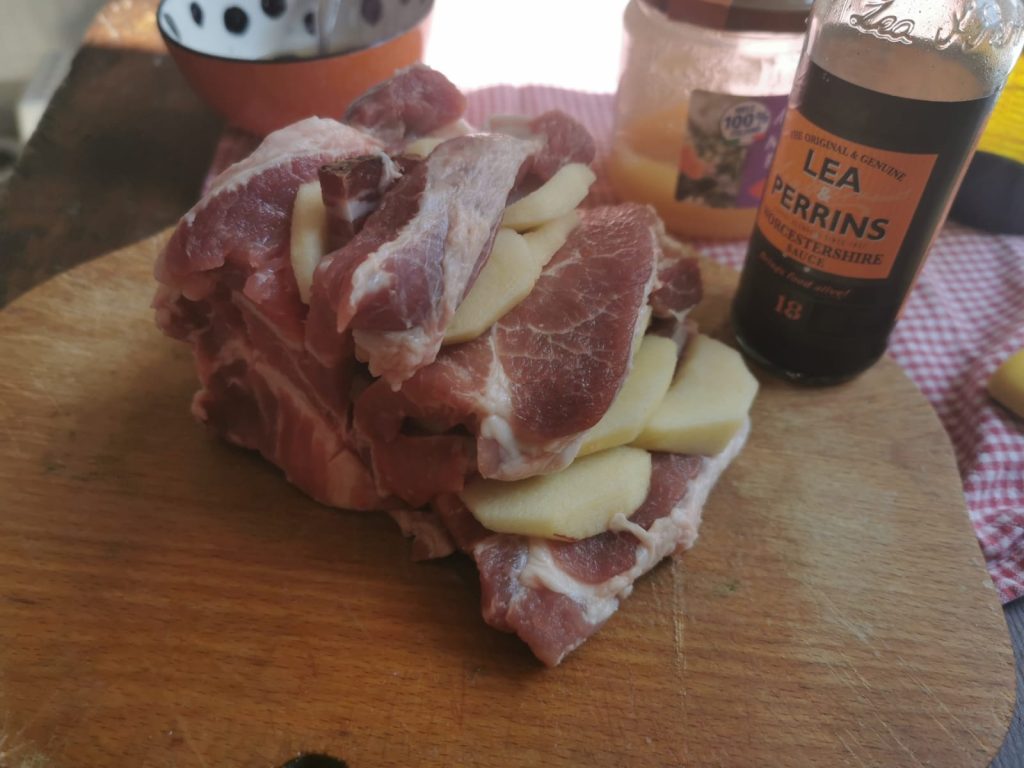 Je vous propose une recette un peu particulière, Coppa de porc aux pommes glacées. Une recette particulière, avec une association, celle du porc, en l’occurrence la coppa, et les pommes, le tout garni d’un glaçage au miel, pour rendre la surface croustillante et sucrée.