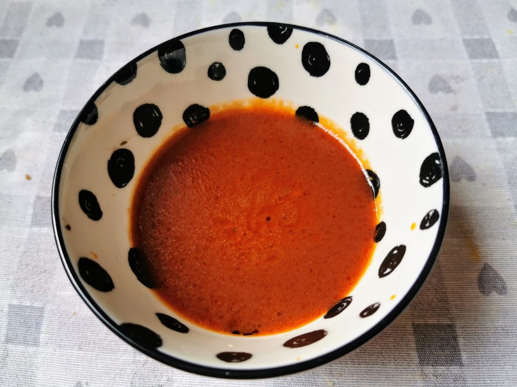 Prenez une poêle antiadhésive, mettez la purée de tomates et chauffez-la, ajoutez le reste du fond de marinade avec le sucre, mélangez jusqu’à ce qu’il devienne épais. Une fois prête, retirez-la du feu et filtrez la sauce obtenue avec l’aide d’une spatule et d’une passoire à mailles fines. Votre sauce est prête, transférez-la dans un bol et servez-la avec la viande.