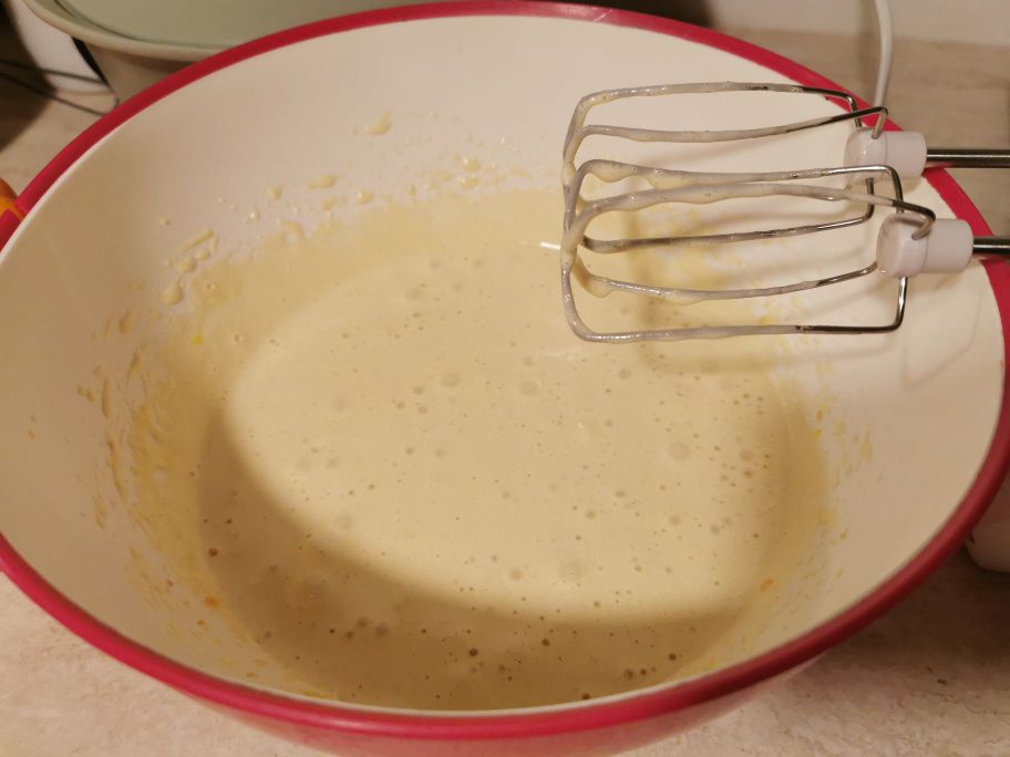 Dans un bol, battez avec le fouet électrique les œufs avec le sucre, jusqu’à obtenir un mélange clair et mousseux. Versez l’huile en filet et continuez à mélanger, ajoutez la farine tamisée avec la levure puis le cacao
