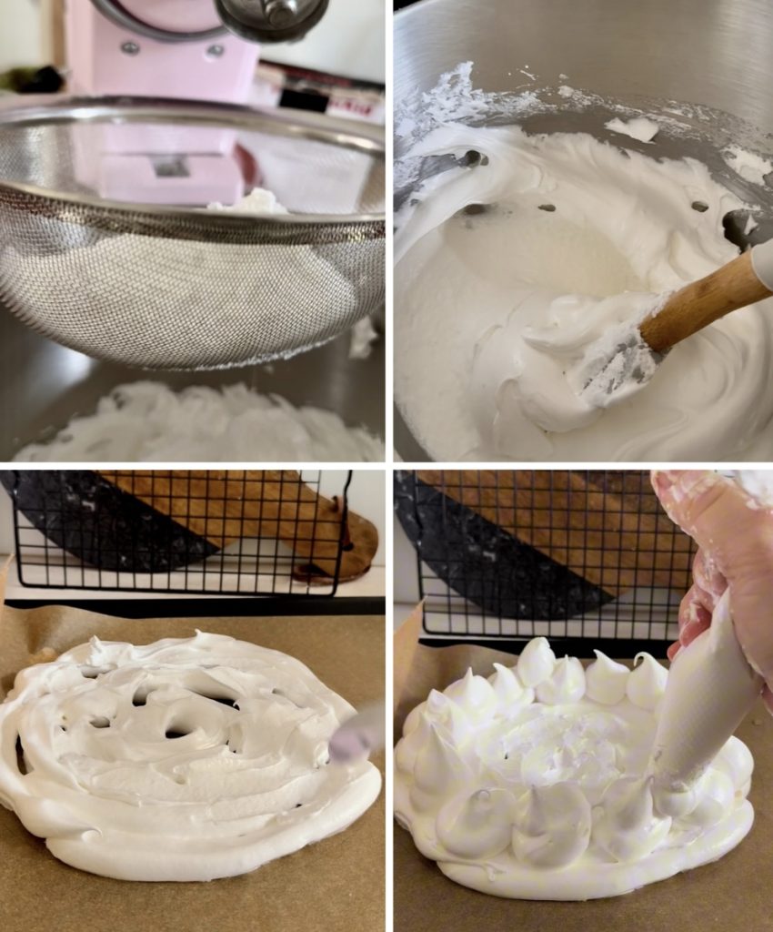 Transférer: Lorsqu’elle est froide, déplacez délicatement la base de meringue sur un plat de service.