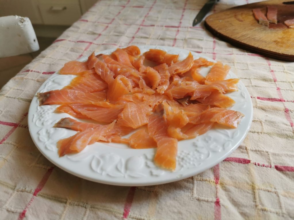Hachez finement le persil frais avec un grand couteau. Coupez le saumon fumé en lanières, pas en petits morceaux, pour éviter qu’il ne devienne de la bouillie à la cuisson. En même temps, faites chauffer l’eau pour cuire les pâtes avec du gros sel.