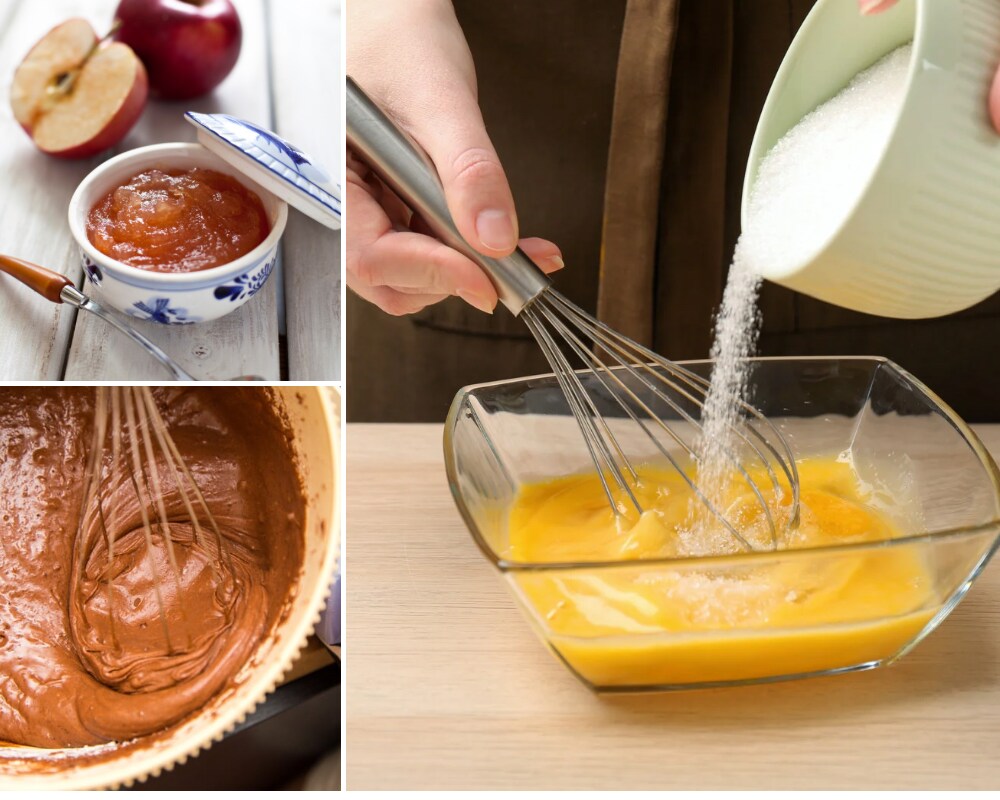 Préparez la pulpe de pomme : Épluchez et coupez les pommes en dés. Mettez-les dans une casserole avec un peu d’eau et faites-les cuire à feu doux jusqu’à ce qu’elles soient tendres. Écrasez-les avec une fourchette ou passez-les au mixeur pour obtenir une purée lisse. Laissez refroidir complètement.