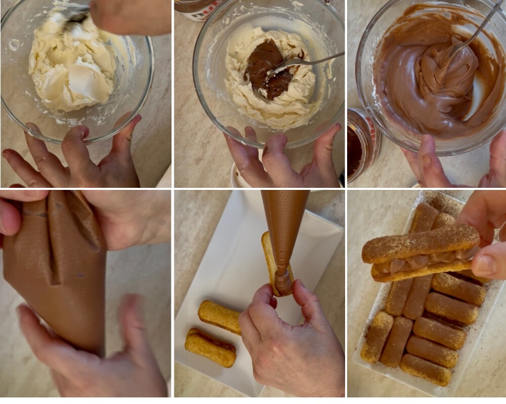 Dans un grand bol, mélangez le mascarpone avec la Nutella jusqu’à obtenir une crème homogène.