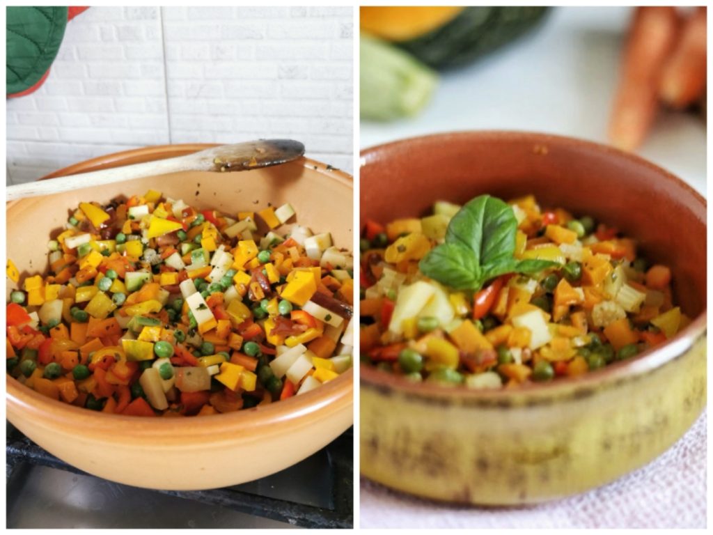 Lorsque les légumes sont cuits mais encore croquants, retirons-les du feu, et ajoutons sel et poivre, décorons avec quelques feuilles de basilic frais et un filet d’huile d’olive à cru. Prêt à assaisonner un plat de gnocchis ou de pâtes