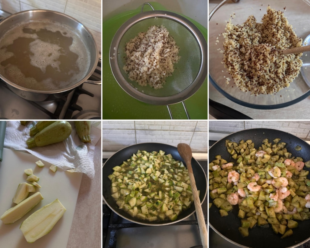 Étapes salade de bulgur et quinoa avec courgettes et crevettes
