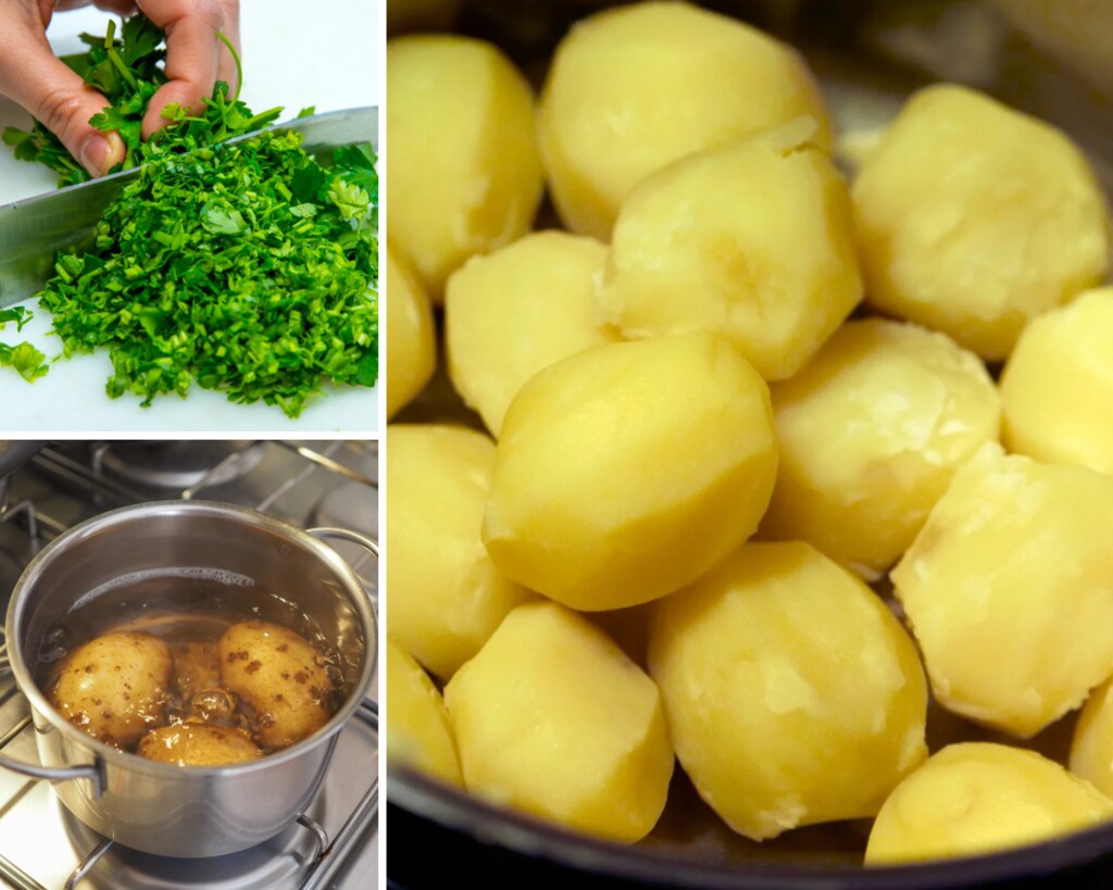 Le véritable secret de cette salade réside dans la qualité des ingrédients et leur harmonie. Choisissez des pommes de terre à chair ferme, celles qui tiennent bien à la cuisson et ne se défont pas, comme les pommes de terre nouvelles qui en cette période à Piacenza sont un vrai délice ! Faites-les cuire avec la peau pour en préserver au mieux le goût et les propriétés nutritives. Une fois tièdes, épluchez-les et coupez-les en morceaux ou en rondelles, selon votre préférence. Et puis, le protagoniste vert : un beau bouquet de persil frais, celui au parfum intense et vif, finement haché pour libérer tout son arôme.
