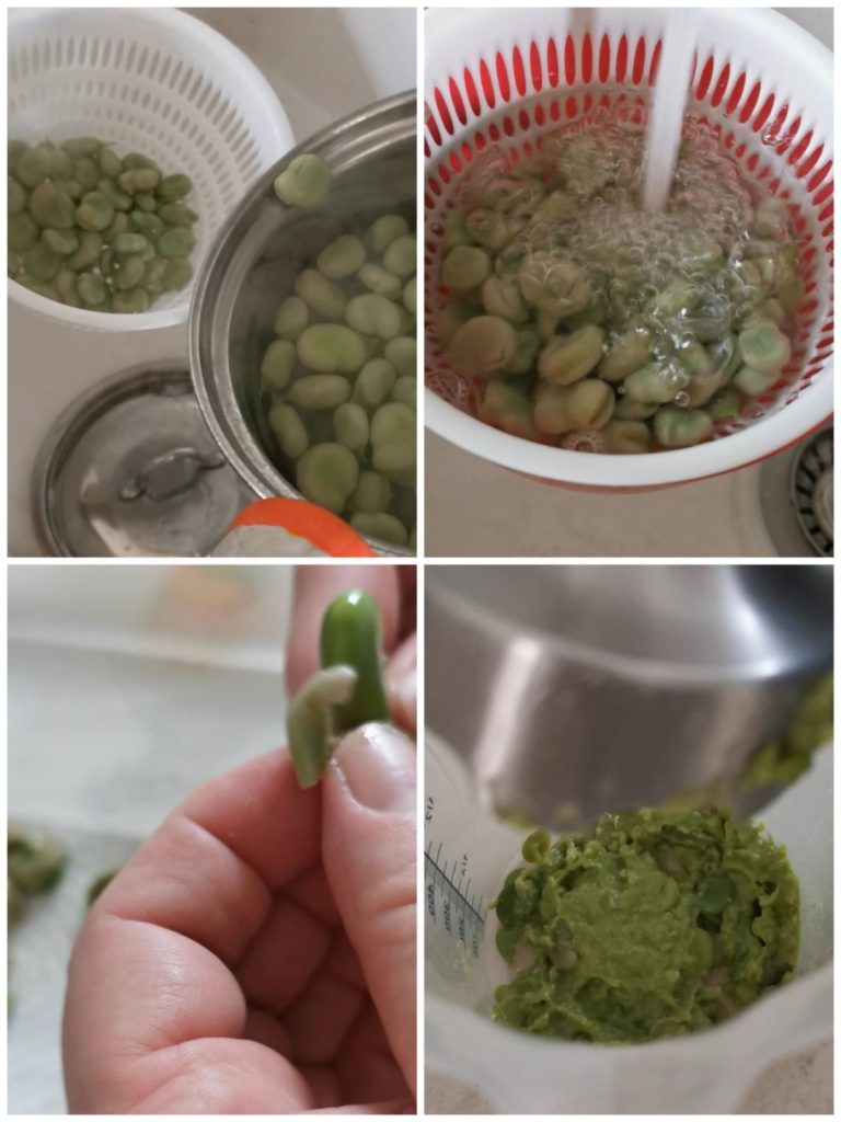 Commençons par écosser les fèves, les faire cuire à l’eau bouillante pendant environ 10 minutes