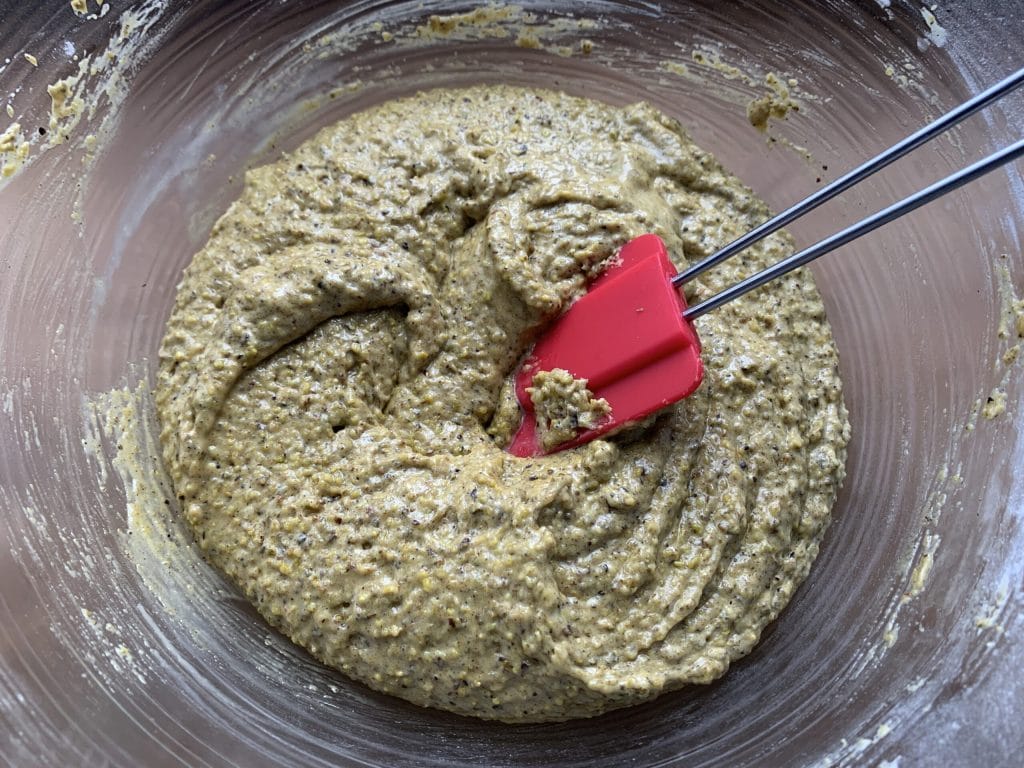 Dans la recette, il n’y a pas de farine mais uniquement des pistaches non salées et hachées et de la fécule de pomme de terre qui confère de la douceur au dessert.