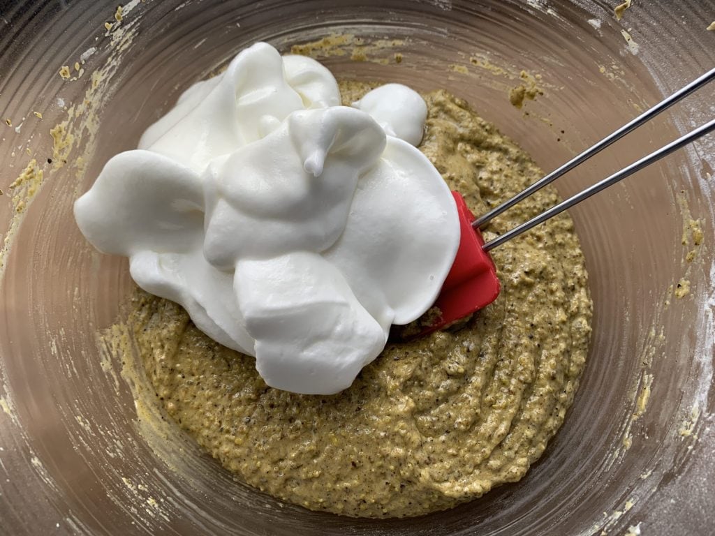 Pour finir, ajoutez les blancs d’œufs montés et incorporez-les au mélange avec une spatule et en effectuant des mouvements de bas en haut pour ne pas faire tomber le mélange.