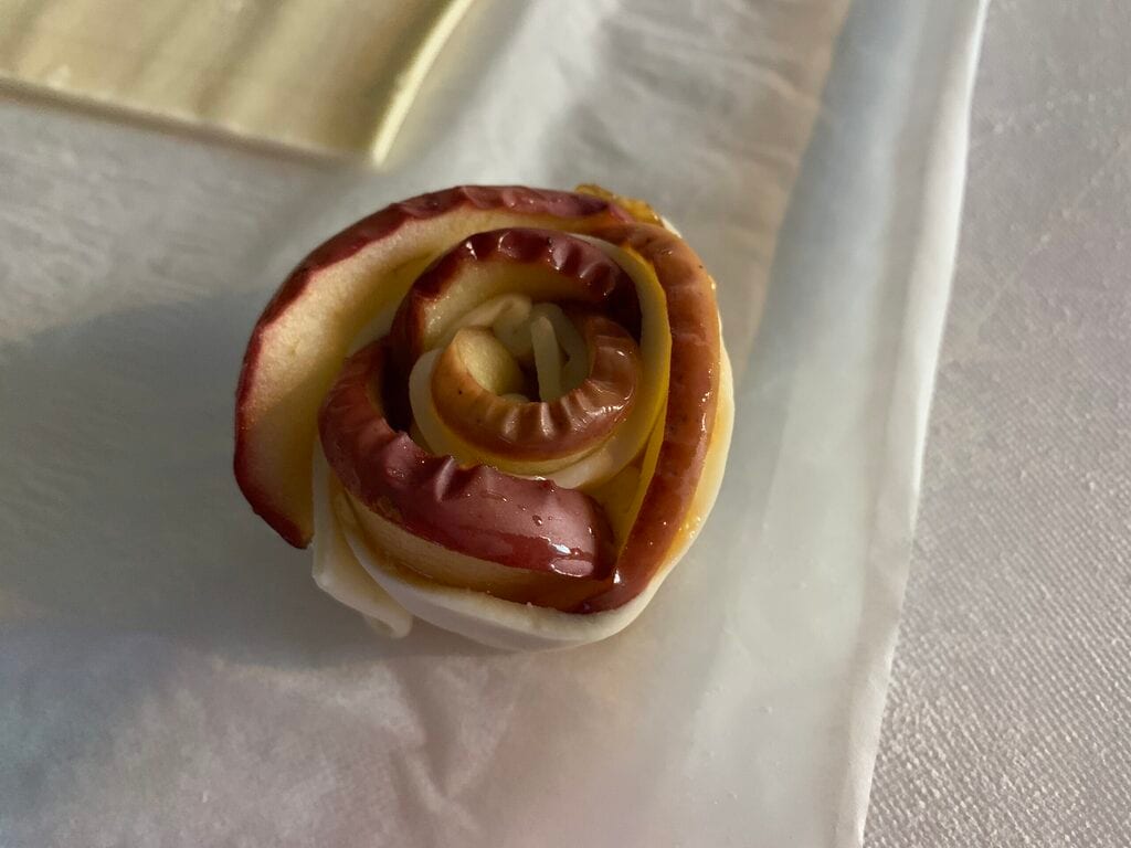 Étapes pour la préparation et la cuisson des roses de pâte feuilletée aux pommes et à la cannelle: