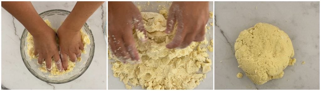 Pétrissez avec les mains, en continuant d’ajouter toute la semoule, jusqu’à l’épuisement, à ce moment-là vous devrez obtenir une pâte ferme et légèrement collante.