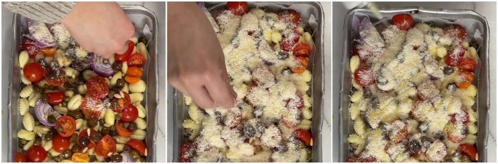 Gnocchi méditerranéens au four un plat principal, ou peut-être un accompagnement… je ne sais pas, je sais juste qu’après avoir préparé mes Gnocchi de pommes de terre, les Gnocchi au pesto et ensuite les Gnocchi de pommes de terre frits, j’ai décidé de les faire aussi au four, avec un assaisonnement savoureux, goûteux et très simple !