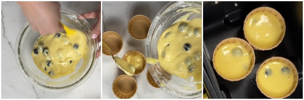 Enfin, ajoutez les myrtilles lavées et séchées à la pâte à muffins à friteuse à air.
