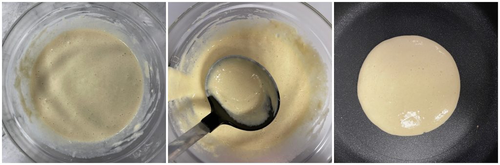 La recette de pancakes sans œufs est très facile à réaliser, il suffit de remplacer l’œuf par plus de lait et plus de farine, mais cette recette est également excellente si vous ne pouvez pas utiliser de lait, car j’ai décidé de le remplacer par du lait de soja, pour rendre le mélange légèrement plus coloré.