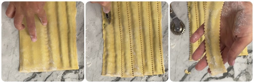 Scellez bien les bords puis découpez les tagliatelles farcies avec la roulette dentelée.