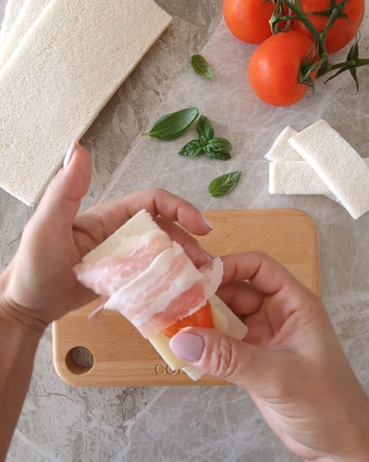 Les amuse-bouches tomate et lard sont une gourmandise incontournable ! Après le grand succès des Amuse-bouches au Philadelphia, je veux vous proposer une version estivale tout aussi rapide, qui se prépare en 5 minutes et que vous pouvez cuire même dans une friteuse à air. J’aime préparer des Entrées, mes préférées sont le roulé d’aubergines avec roquette et speck et les roulés avec jambon et Philadelphia à accompagner des sandwichs tomate et mozzarella. Les amuse-bouches tomate et lard peuvent être servis chauds ou froids et préparés quelques heures à l’avance, essayez-les, je suis sûre que vous les aimerez !