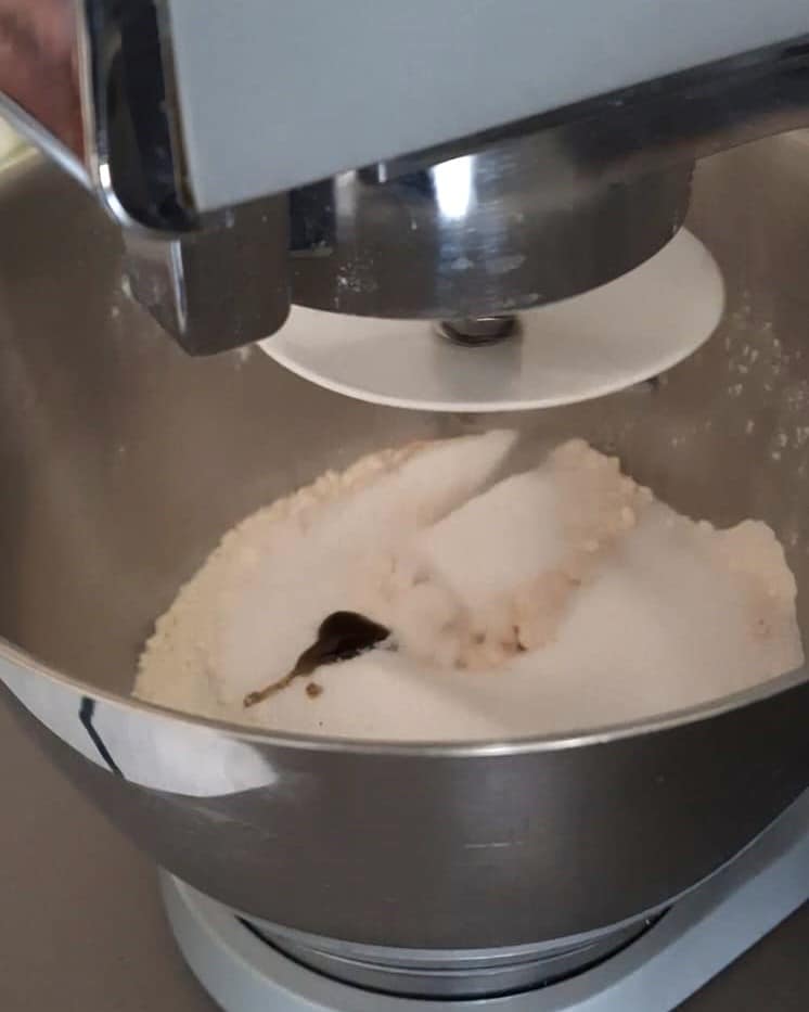 Mélangez la levure avec la farine, le sucre, puis versez le lait tiède (attention, pas bouillant) et commencez à pétrir, à la main ou avec le pétrin, puis ajoutez l’œuf et l’huile en filet.