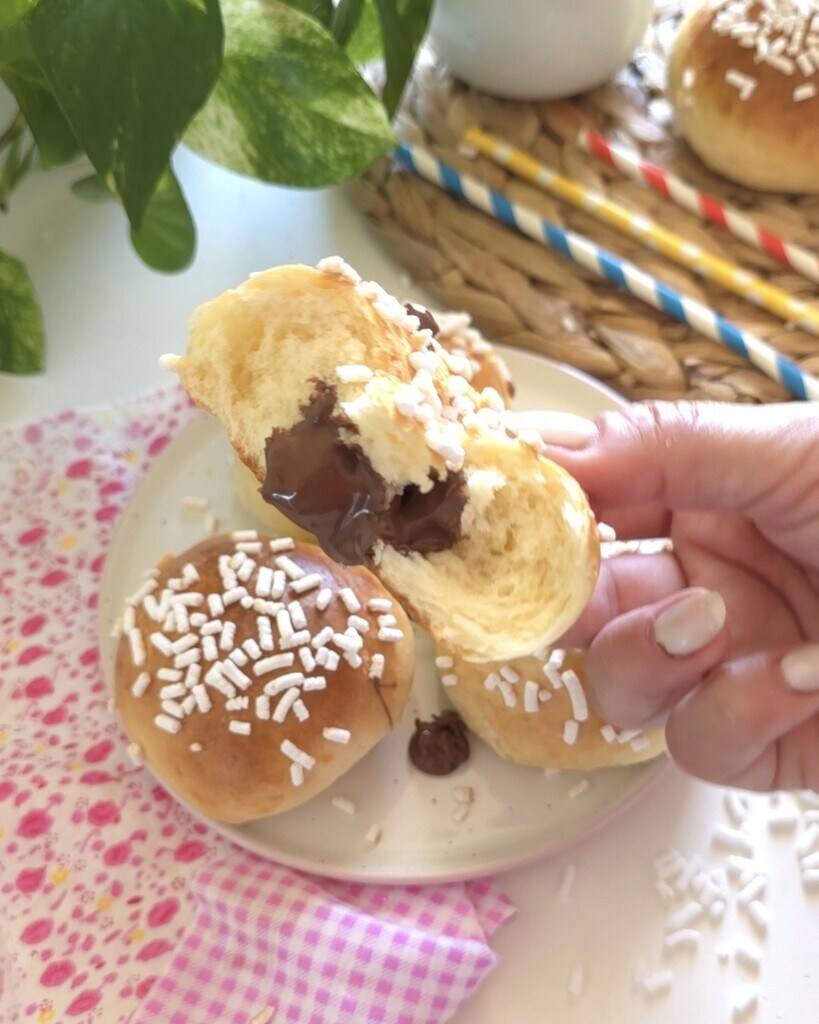 Brioche du matin, comme le titre le suggère, cette recette est parfaite pour le petit-déjeuner. Il s’agit de nuages moelleux et gourmands, une pâte levée vraiment simple, qui reste douce et délicieuse à chaque bouchée. Pour avoir votre explosion personnelle de goût, vous pouvez évidemment les garnir à votre convenance, dans mon cas, j’ai opté pour la mythique Nutella, mais vous pouvez vraiment ajouter ce que vous préférez, comme par exemple : crème de pistache, crème pâtissière et crème au lait. Je ne m’attarde pas plus longtemps, je vous laisse lire et enregistrer la recette, et si vous ne l’avez pas encore fait, inscrivez-vous à mes chaînes Facebook et Instagram.