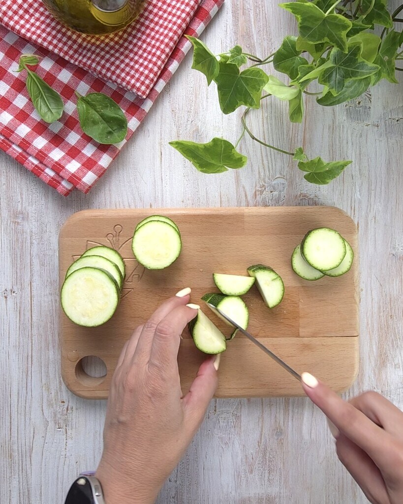 Commencez par couper les courgettes, retirez les extrémités et coupez-les en rondelles ou en cubes selon vos préférences.