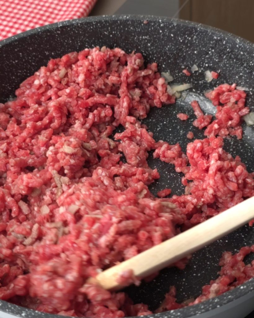 Ajoutez la viande, salez et poivrez. Faites cuire jusqu’à ce que la viande soit bien cuite.