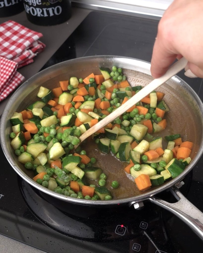• Mélangez le tout puis incorporez les légumes que vous avez cuits précédemment.