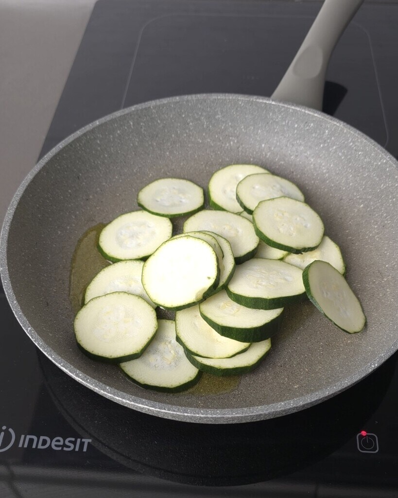 Coupez les courgettes en rondelles, puis faites-les revenir dans une poêle avec un filet d’huile et une gousse d’ail. Salez et poivrez et continuez la cuisson pendant encore 5-6 minutes à feu doux en mélangeant de temps en temps.