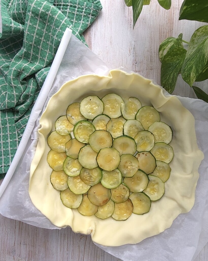 Feuilleté de courgettes avec lardons et parmesan, une recette facile et savoureuse.
