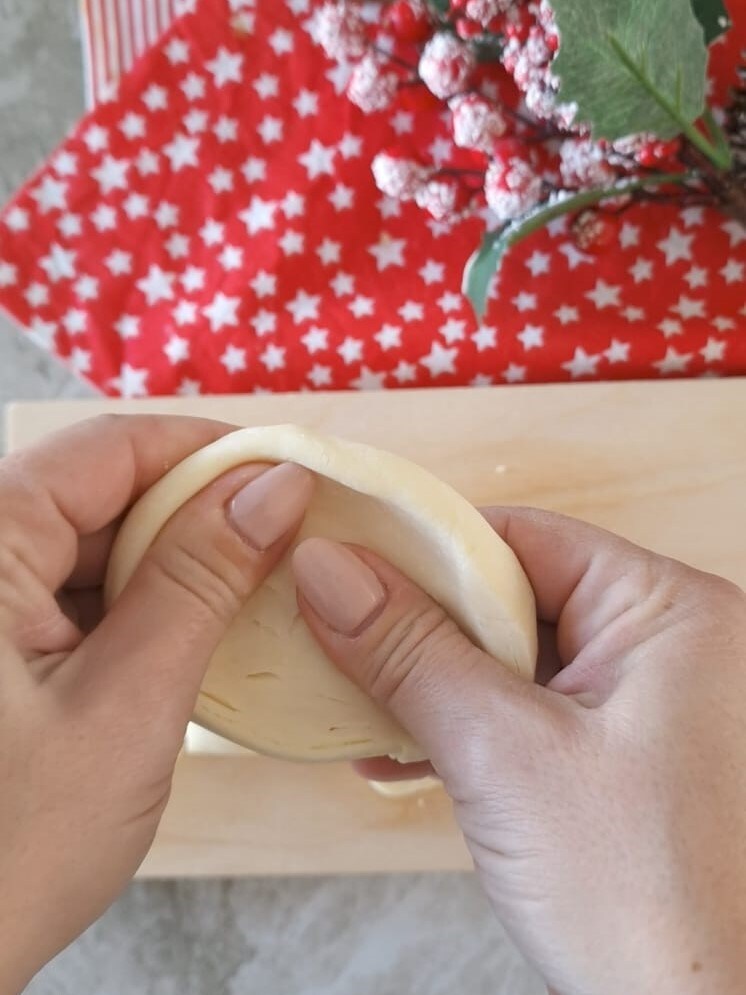 Prenez chacune avec les mains, aplatissez-la légèrement et appuyez du centre vers l’extérieur avec les doigts pour créer une cavité.
