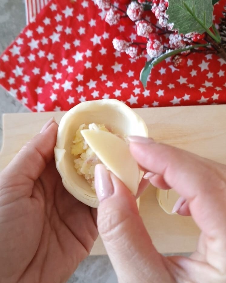 À ce stade, garnissez avec la purée de pommes de terre, fermez et scellez bien les bords.