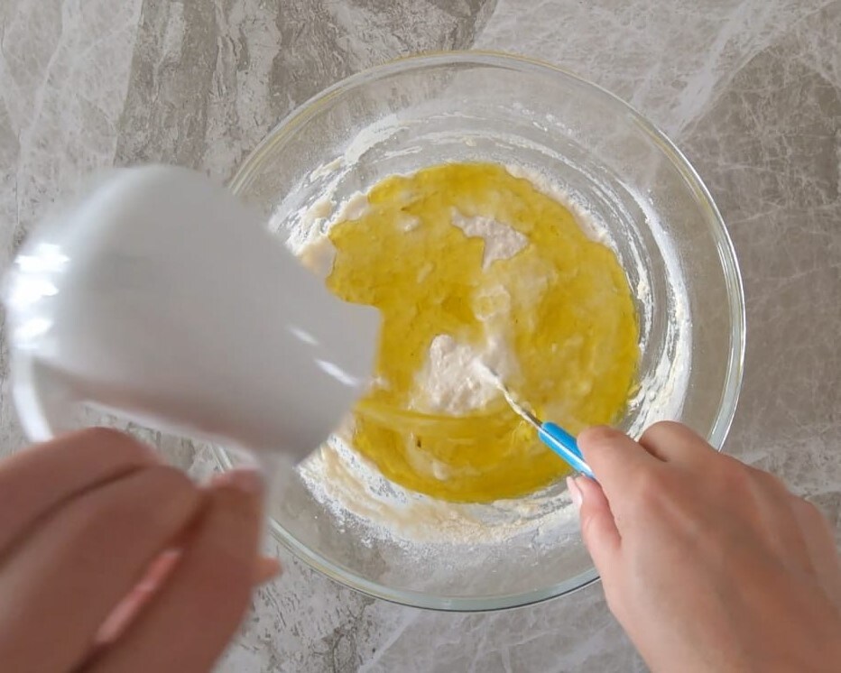 Dans un grand bol, versez la levure, la farine et l’eau tiède,