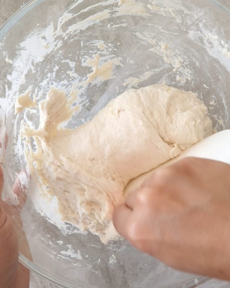 Faites des plis à l’intérieur du bol en ramenant les bords vers l’intérieur, répétez cette étape au moins 10 fois, puis laissez lever pendant 2 heures dans le four éteint avec la lumière allumée.