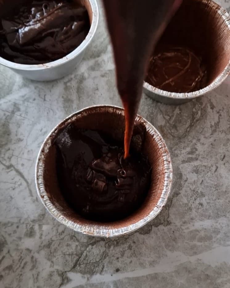 Une bonne technique pour savoir si le fondant est bien cuit est de vérifier à la fin de la cuisson, si un petit cratère s’est formé au centre du fondant. Cela indiquera que le chocolat à l’intérieur est encore fondu et donc prêt à être servi.