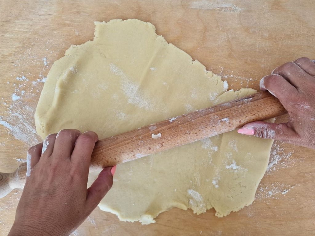 Laissez reposer au réfrigérateur pendant au moins 1 heure, puis étalez la pâte avec un rouleau à pâtisserie pour obtenir une épaisseur d’environ 4 mm.