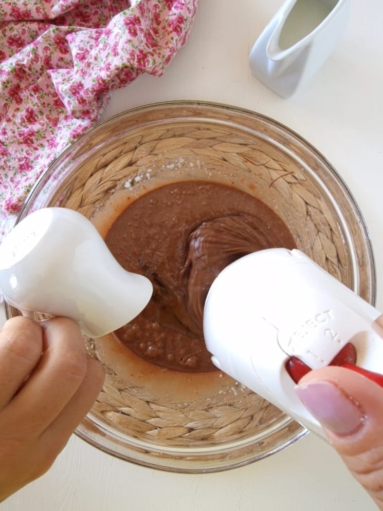 Ajoutez la nutella et mélangez encore avec les fouets électriques.