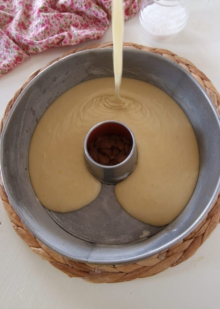 Versez la pâte dans un moule à gâteau beurré et fariné de 24 cm.