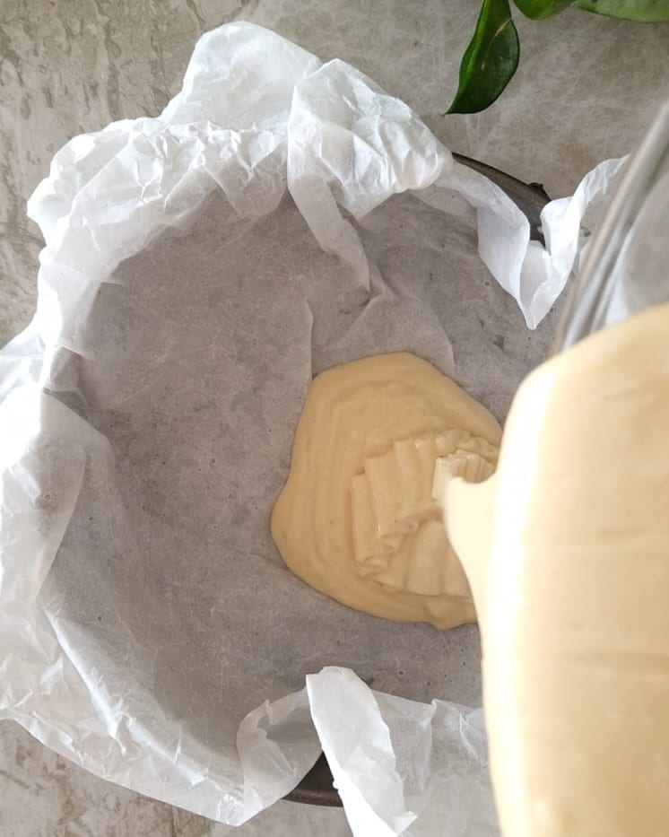 Versez la pâte dans un moule de 22 cm puis nivelez bien.