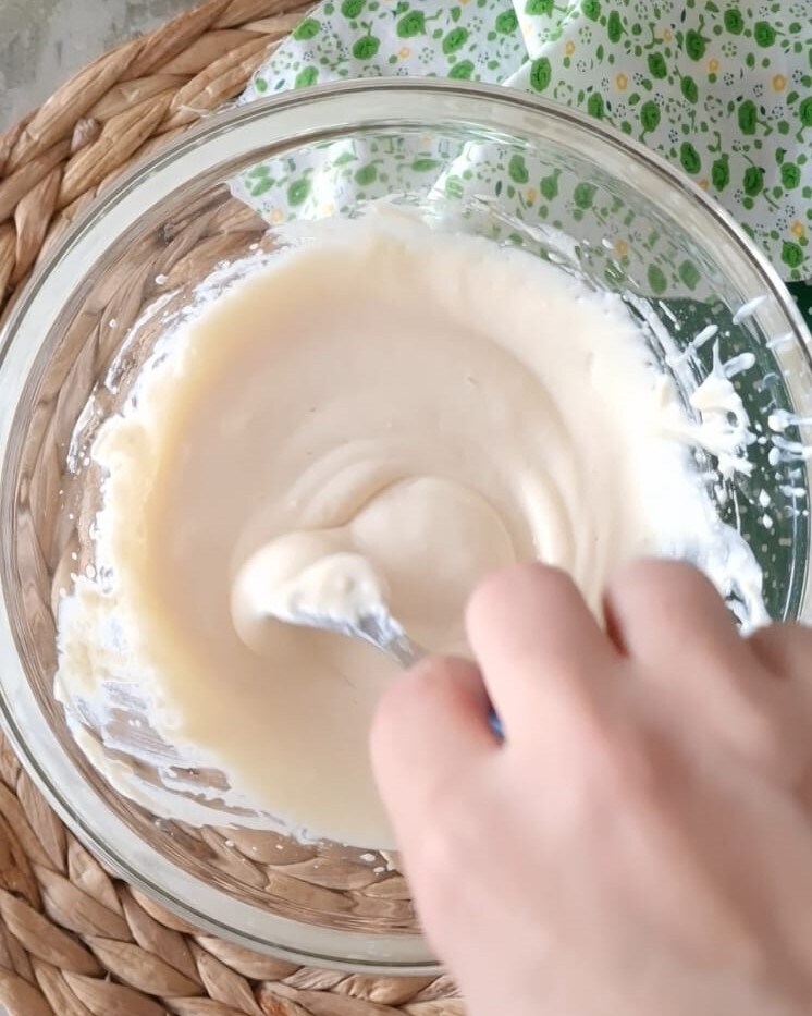 Ajoutez le sucre et l’œuf battu, puis mélangez et réservez.