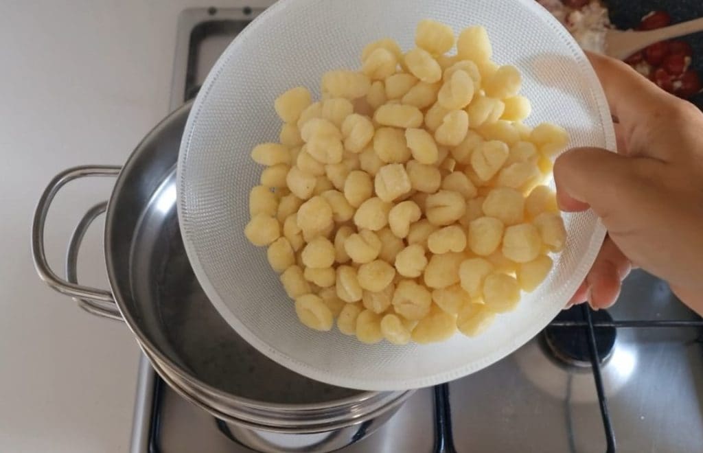 Versez les gnocchis dans de l’eau bouillante salée et égouttez-les dès qu’ils remontent à la surface.