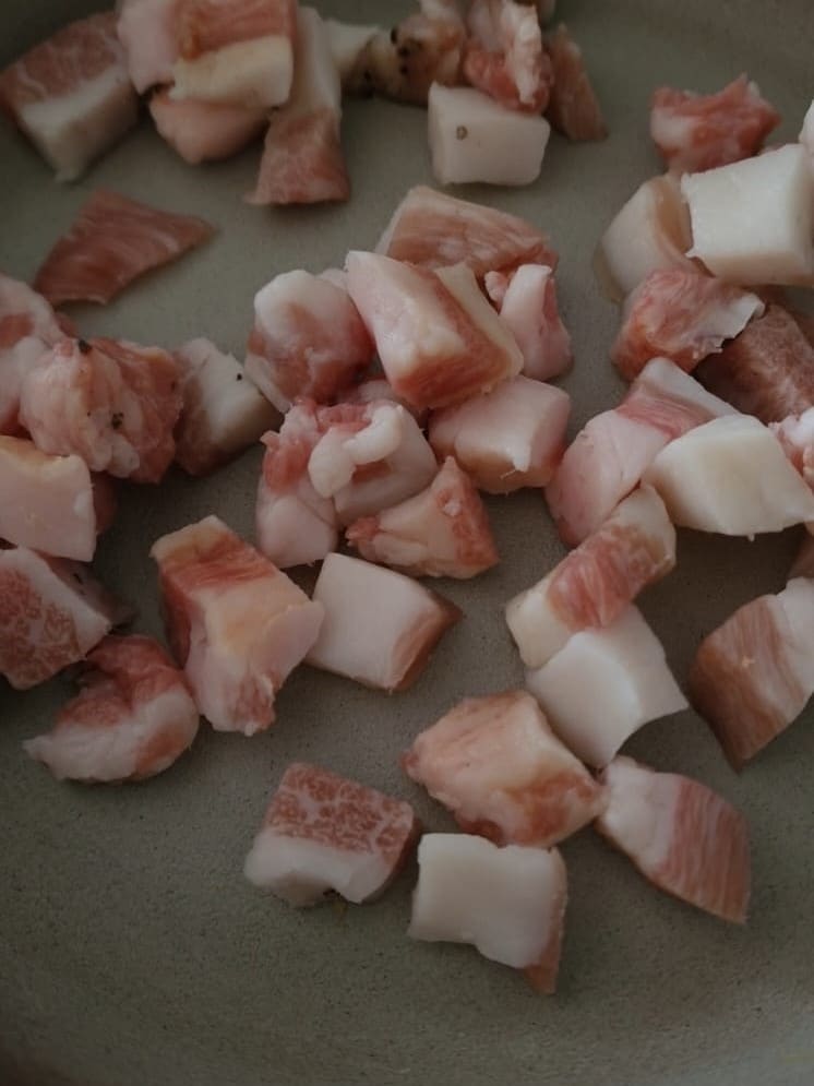 Mettez de côté. Dans une poêle, faites revenir la joue de porc sans graisse.