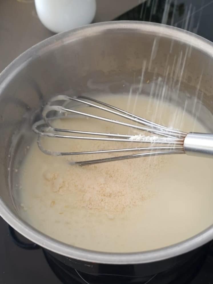 Pour préparer la sauce au parmesan, il faut faire fondre le beurre dans une petite casserole.