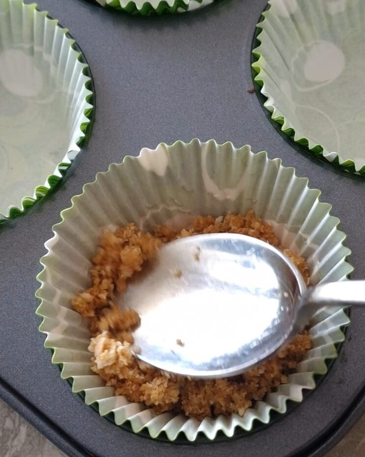 Insérez le mélange dans les caissettes en papier, tassez bien et laissez reposer au congélateur. Pendant ce temps, faites tremper la gélatine.