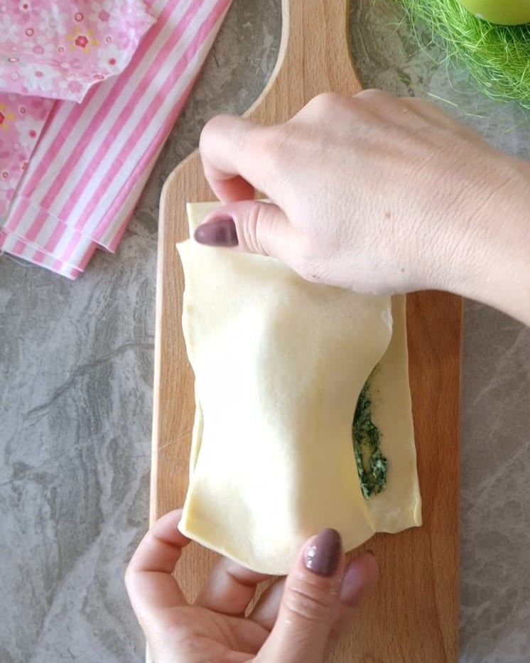 Mini Pasqualine en pâte feuilletée, parfaites pour inclure dans le menu de Pâques. Recette facile et rapide, et c’est une variation de la recette classique de la torta Pasqualina. Ce rustique a des origines liguriennes, il s’agit d’une tarte salée à base d’épinards, ricotta et œufs durs, typiquement consommée pendant Pâques. Les mini pasqualine en pâte feuilletée sont savoureuses et originales, vous pouvez les servir comme entrée, accompagnées de amuse-bouches au bacon et Philadelphia. Vous pouvez les préparer bien à l’avance et les cuire juste avant de passer à table. Elles sont parfaites aussi à emporter pour un pique-nique accompagnées de la traditionnelle Torta di Pasqua ou de la Colomba Danubio à la nutella.