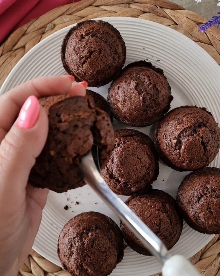 Avec les quantités et les doses de chaque ingrédient, vous réaliserez environ 12 muffins sacher.