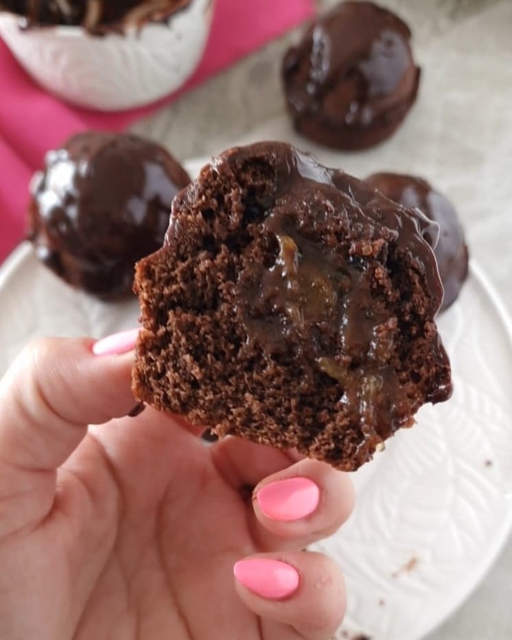 Pour finir, décorez les muffins avec la ganache au chocolat préparée auparavant.