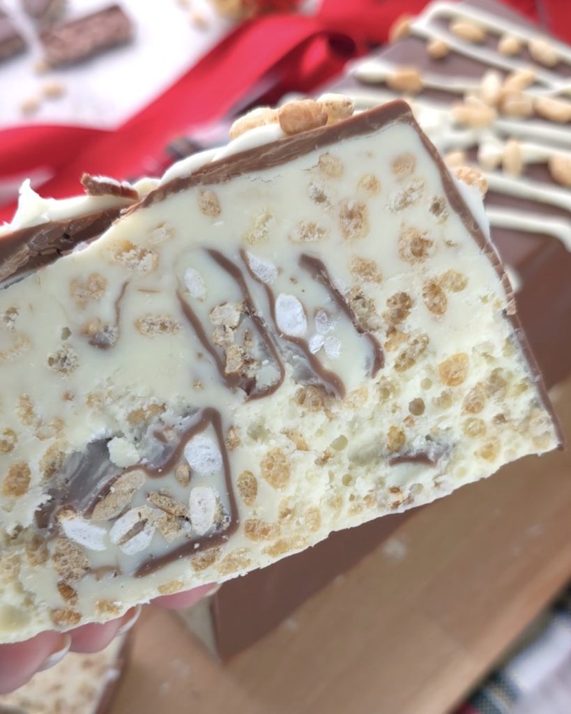 Nougat aux Kinder céréales est une recette facile et gourmande. Cette fois, j’ai voulu faire les choses en grand et préparer ce merveilleux dessert à base de chocolat au lait, de riz soufflé et de crème à tartiner au chocolat blanc. Il est parfait pour la table des Fêtes ou à offrir à Noël. On peut le préparer bien à l’avance et c’est un dessert sans cuisson. Si je vous ai assez intrigué, courez préparer la recette et si vous l’essayez, faites-le moi savoir dans les commentaires.