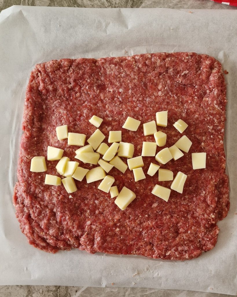 Avec l’aide du papier, roulez sur lui-même pour former un rouleau, compactez bien puis laissez reposer au réfrigérateur pendant au moins une demi-heure, cela aide à bien compacter la viande et qu’elle ne se défasse pas à la cuisson.