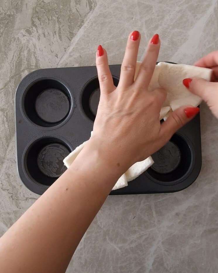 Applatissez chaque carré avec le rouleau à pâtisserie et ensuite placez-les dans les moules à muffins, en appuyant légèrement en faisant attention de ne pas les casser.À ce point, faites cuire au four statique à 180°C pendant 15 minutes.