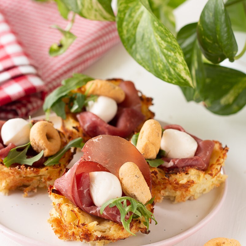 Paniers de pommes de terre une recette pour une entrée facile et rapide à préparer, qui est également assez économique. Vous pouvez les garnir de nombreuses façons différentes, dans ma version, j’ai choisi de les garnir de bresaola, d’un tarallino et d’une petite mozzarella. Les paniers de salami et les paniers de pain sont également très bons. Je le sais, vous aimez les recettes rapides et spectaculaires comme celle-ci, si vous cherchez une recette vraiment savoureuse, essayez tout de suite les paniers de pommes de terre, et n’oubliez pas de me suivre sur mes réseaux sociaux Facebook et Instagram