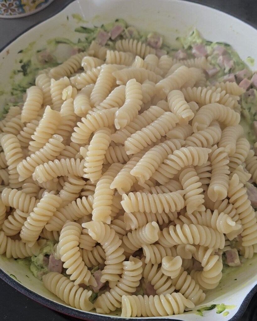Comment faire les Pâtes avec courgettes jambon et Philadelphia