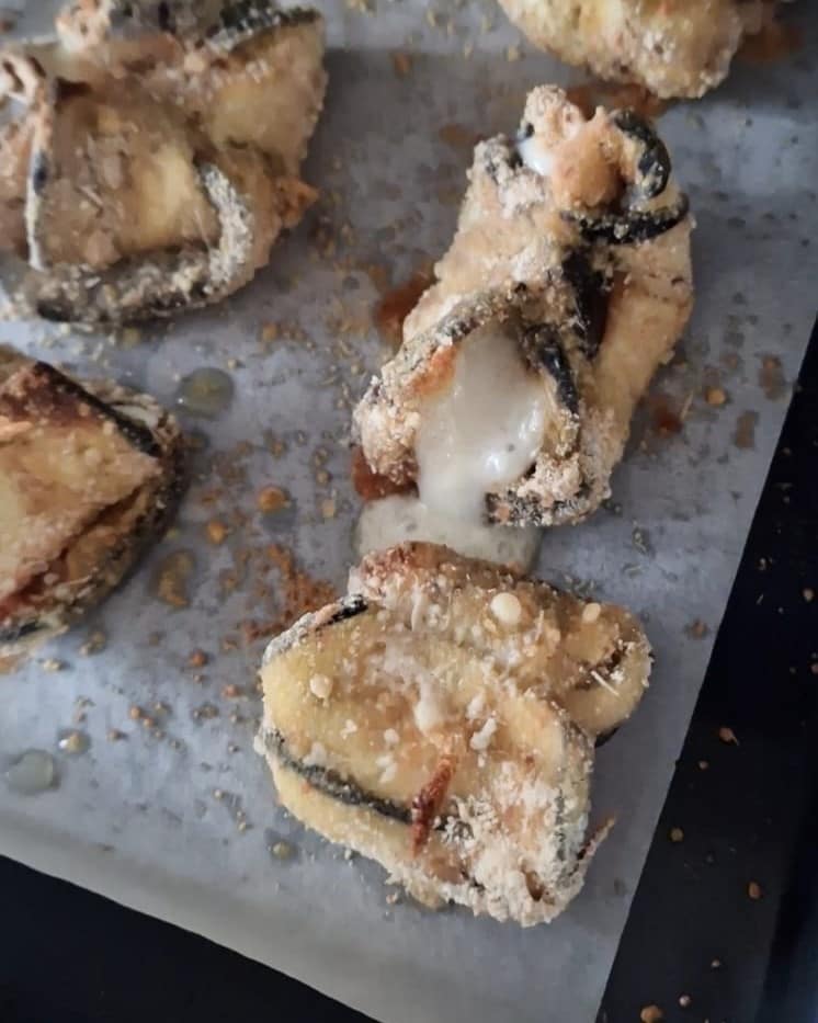 Les paupiettes d’aubergines sont une recette rapide et savoureuse, un plat principal différent de d’habitude, je me suis inspirée des paupiettes de courgettes croustillantes. C’est un plat délicieux, il s’agit de tranches d’aubergines farcies de purée de tomates, de jambon cuit et de fromage puis passées dans la chapelure, quelques minutes au four et en un rien de temps elles sont prêtes! Si vous les essayez, faites-le moi savoir, bisous chicca.